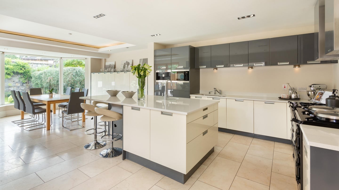 There are two reception rooms, an office and a state of the art kitchen which, despite being a decade old is perfect, and comes with two Miele dishwashers and a five-oven Aga with a summer setting.