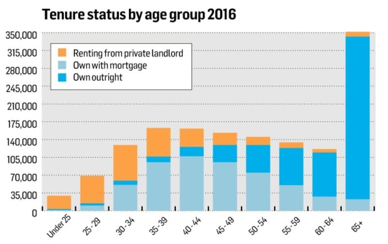The truth is that the number of owner-occupied homes fell between 2011 and 2016 (from 1,149,924 to 1,147,552) causing the overall rate to drop from 69.7 per cent to 67.6 per cent, a level last seen in 1971.