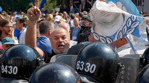 Violence breaks out in Kiev after MPs give initial backing to reforms for more autonomy in the rebel-held east.